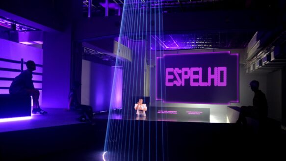 Assinamos a iluminação para a instalação-show audiovisual “Espelho do Poder”, sob direção da dupla Barbara Wagner & Benjamin de Burca. O projeto conta com iluminação cênica DMX e laser programados de forma sincronizada com as obras audiovisuais via timecode, em diálogo com a narrativa dos vídeos e com a arquitetura …